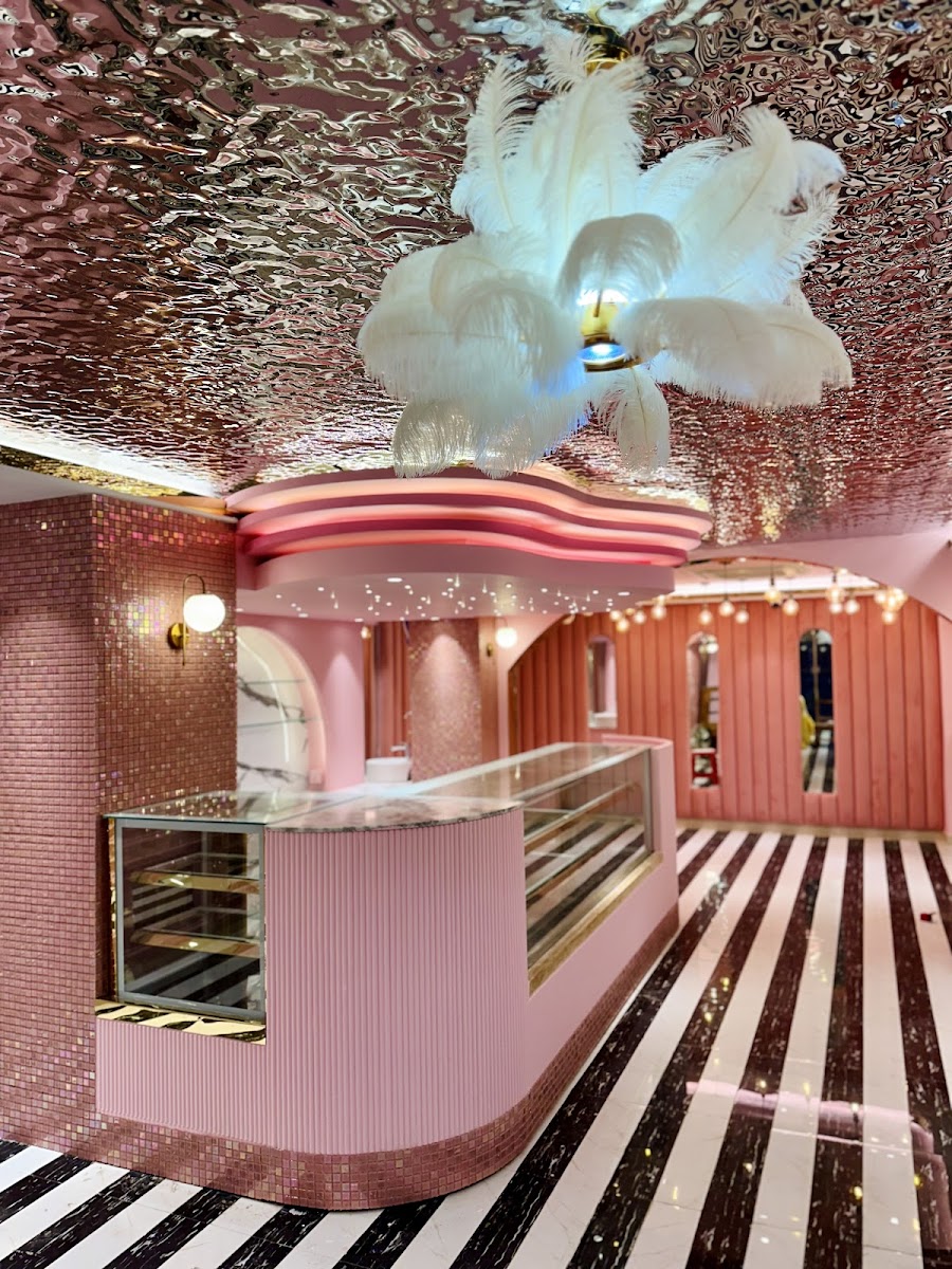 As you step inside, you’re greeted by an ambiance adorned with soft pink decor that immediately sets a friendly and inviting tone. The cozy lighting and comfortable seating make it the perfect spot to unwind, catch up with friends, or even work on your laptop while savoring delicious treats.